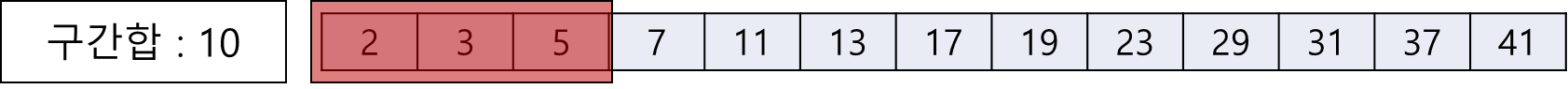 - 구간합이 더 작다면 구간을 늘린다. (뒤쪽 새로운 인덱스를 추가시킨다)