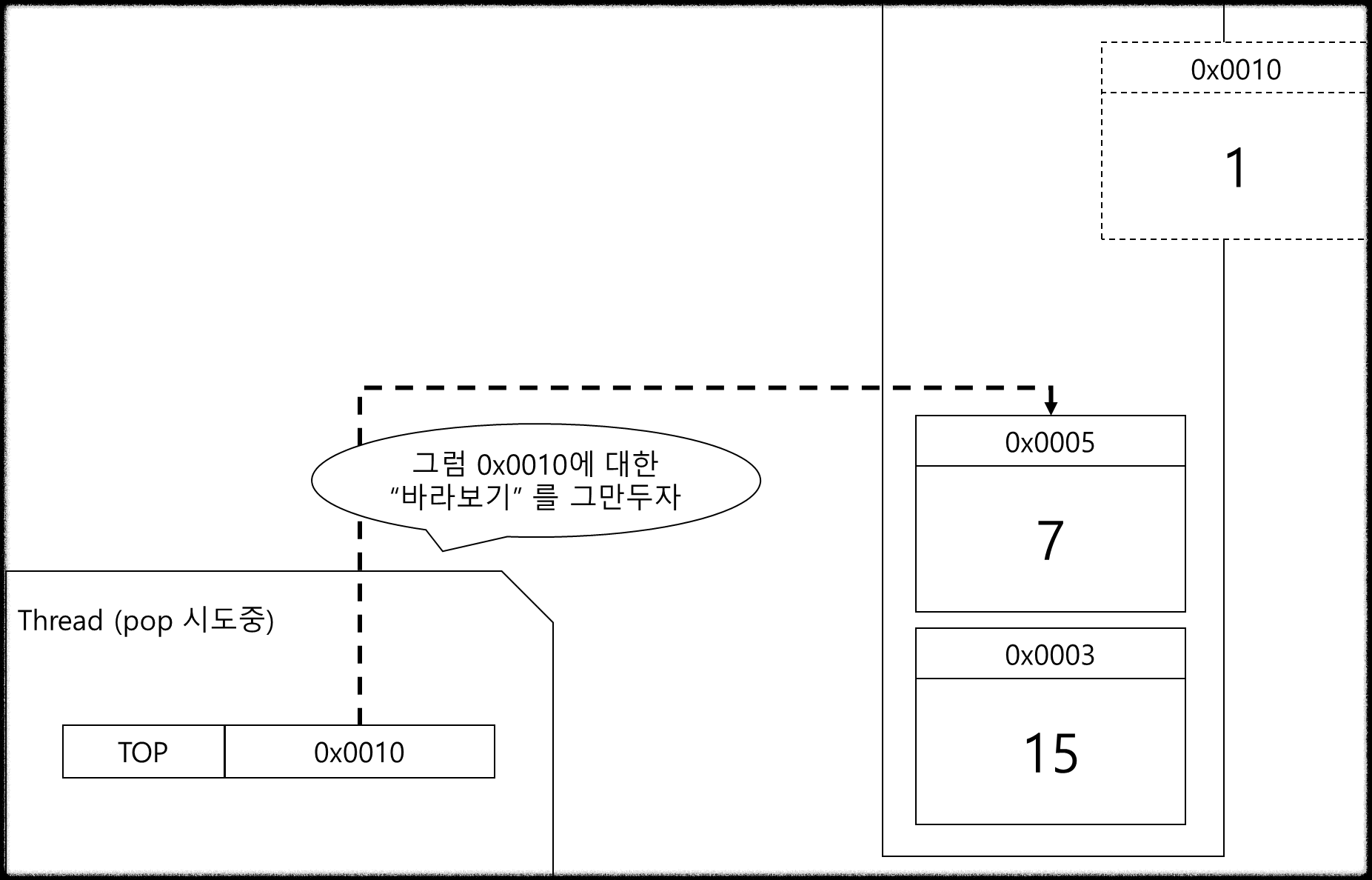 이전 포스팅에서 ABA 문제가 발생 가능한 시나리오와 ABA문제로 인하여 스택의 상태가 실제로 꼬이는 문제를 확인하였다. ABA문제는 잘 알려진 문제 이기 때문에 wiki 뿐만 아니라 다양한 블로그와 홈페이지에서 다루고 있으며 해결책 또한 한두 가지가 아니다.