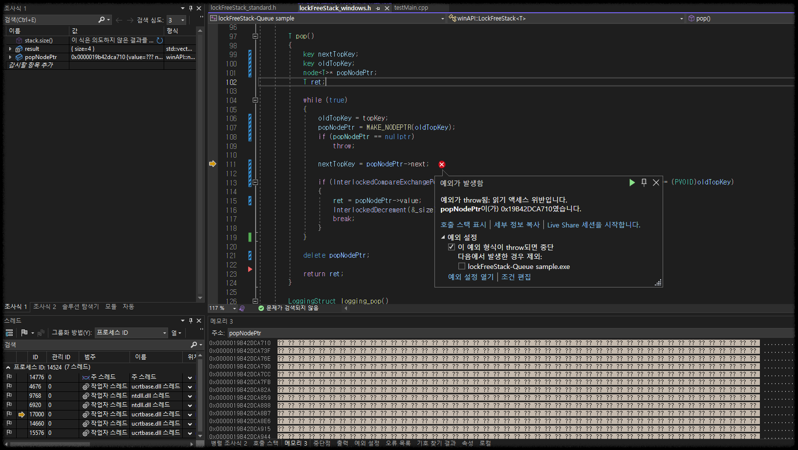 GitHub - YoungWoo93/lockFreeStack-Queue-sample: 블로그 포스팅 내용과 연계