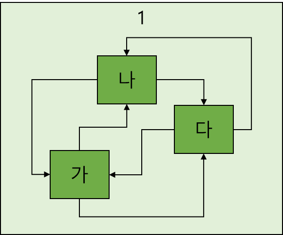 1번 노드가 사실은 서로가 최단거리 탐색이 완료된 [가], [나], [다] 노드의 집합체였다고 가정해보자.