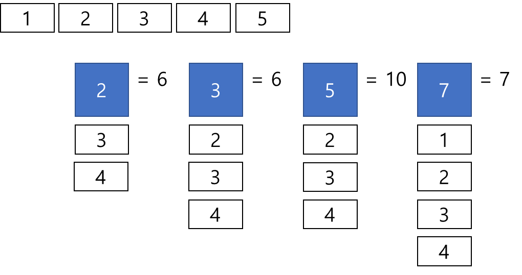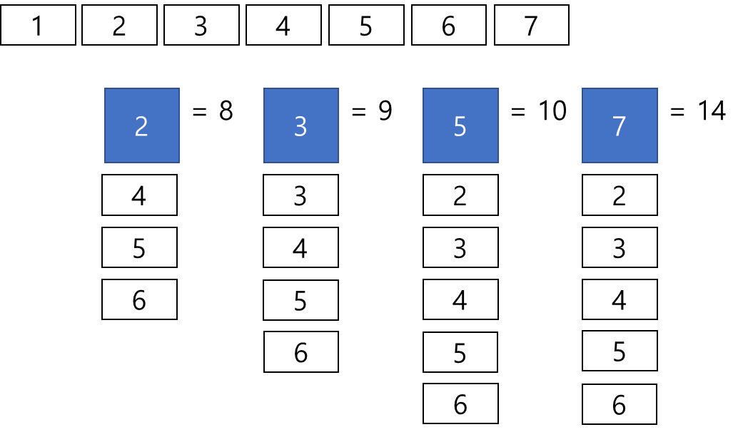 위의 규칙을 따라 문제에서 주어진 예시인 2, 3, 5, 7을 이용해 19번째 답을 구해보자.