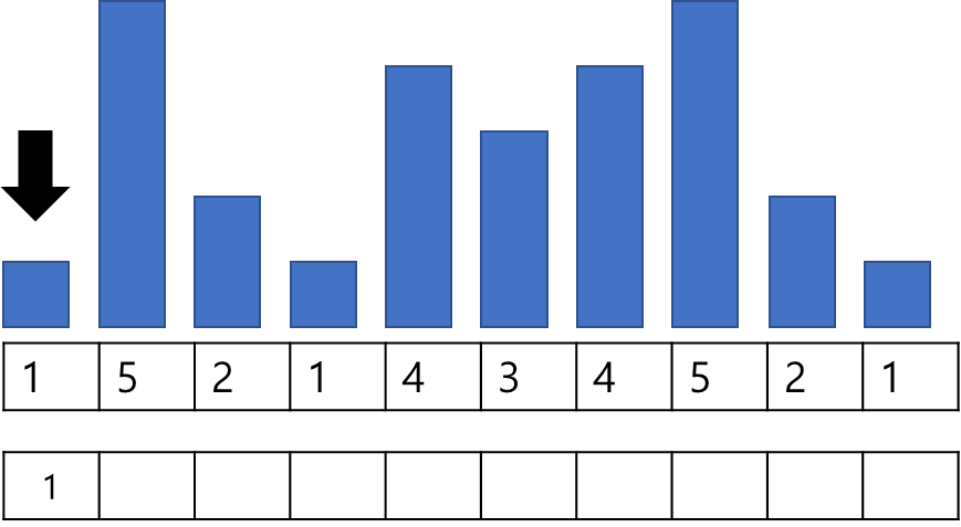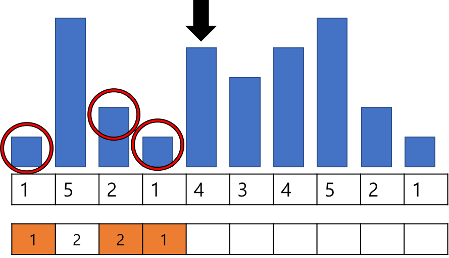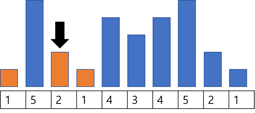 - (규칙 A-1) 좌측에서 시작하여 자기 자신보다 먼저 등장한 인덱스 중 자신보다 작은 수를 찾는다.