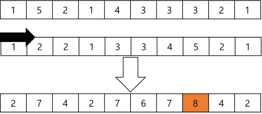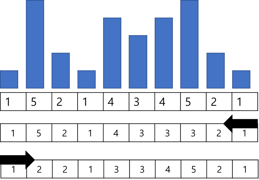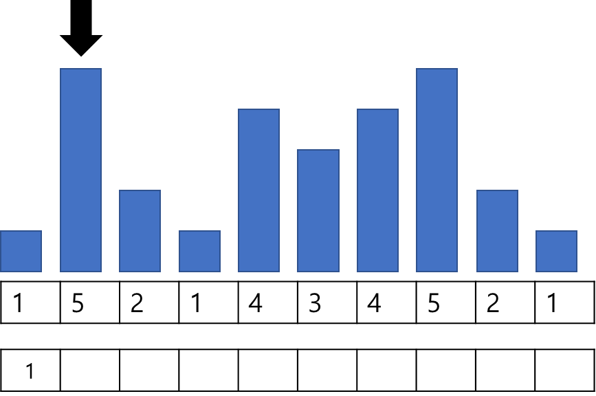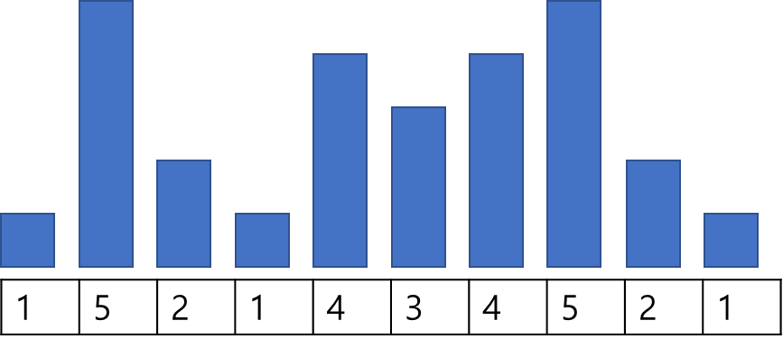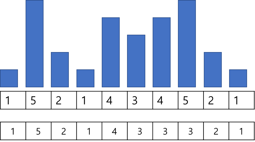 그림의 표는 순서대로 입력된 값들을 의미하며 표 위의 막대들은 해당 값을 가시성 좋게 높이로 표현한 것이다.