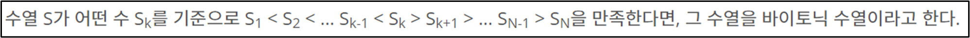 또한, 문제에서 명시된 바이토닉 부분 수열의 정의는 아래와 같다.