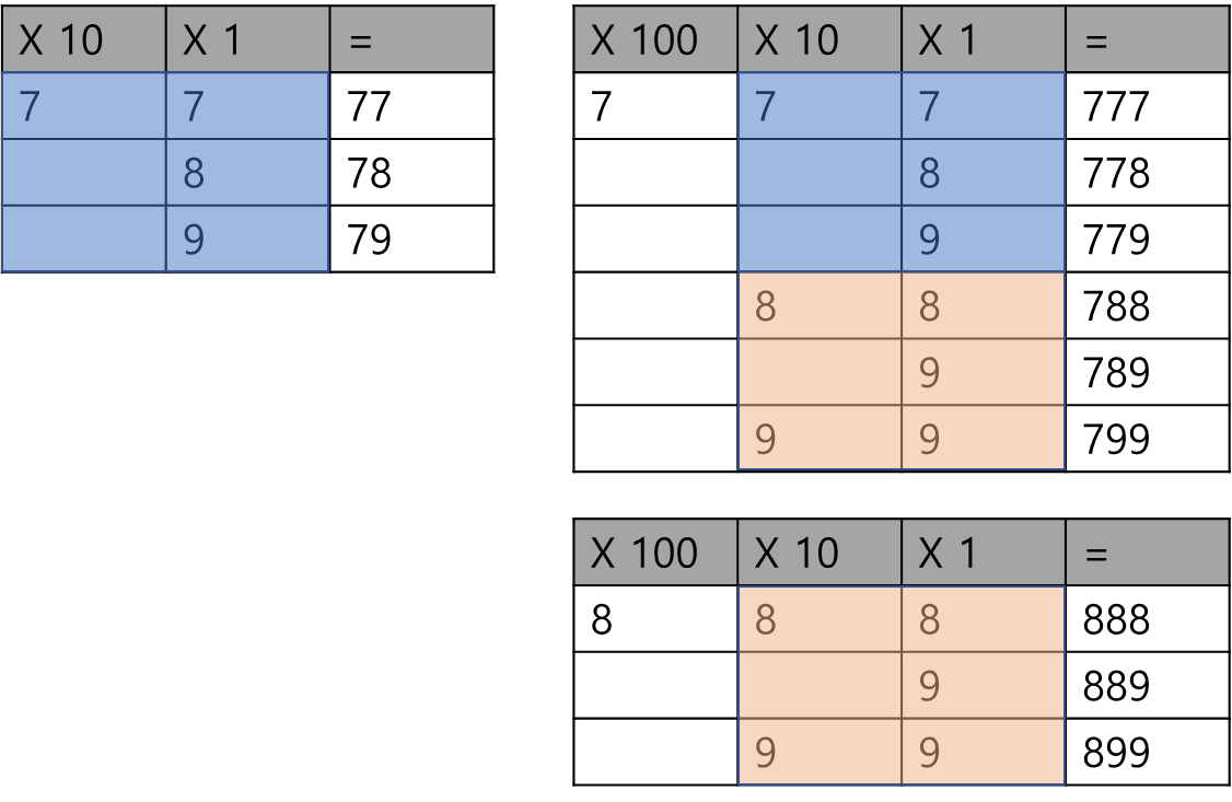 앞의 숫자가 8 일 경우에는, 뒤에 올 수 있는 숫자는 8~9 사이의 값이다.