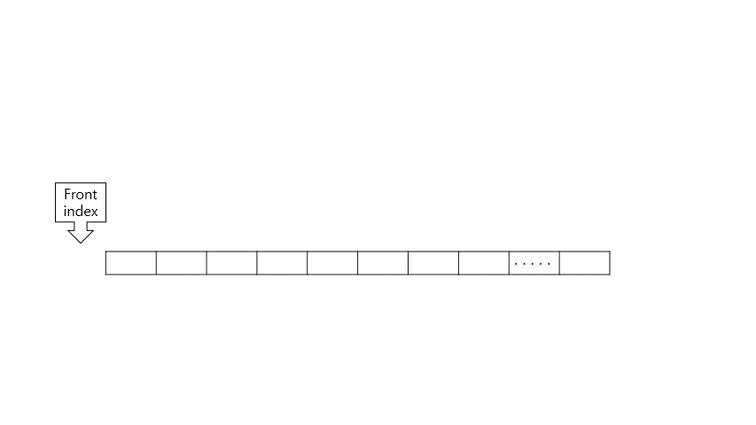 만약 배열 등을 이용하여 직접 큐의 기능을 구현한다면 투 포인터 기법을 이용하여 아래와 같이 구현할 수 있지만, 결국 한계가 있는 방식이다.