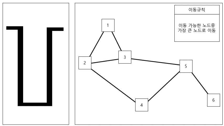 이동지점을 선택할 우선순위는 각 노드의 값이라고 하자. (= 더 큰 노드로 이동)