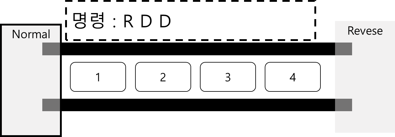 R 명령은 현재의 수행방향을 뒤집어준다. (Normal 이었다면 Reverse로, Reverse 였다면 Normal로)